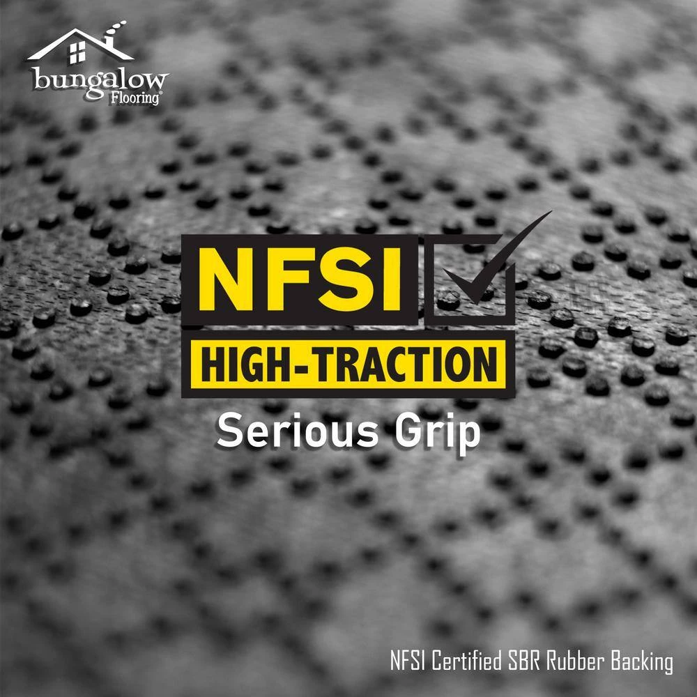 - Serious Grip – Real rubber backing naturally grips to floors.