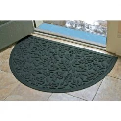Aqua Shield Boxwood Charcoal 24 in. x 39 in. Half Round PET Polyester Door Mat by Bungalow Flooring