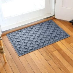 Aqua Shield Brittney Leaf Medium Gray 23 in. x 35 in. PET Polyester Door Mat by Bungalow Flooring
